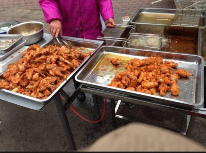 大家看到这张图片是不是感觉很熟悉?在山东财经大学圣井校区上学,怎能不去附近的鸡山村赶集购物呢?那里的水果蔬菜物美价廉,给我们带来方便的同时也节省了许多时间。但是,让我们问一问自己,去赶集的时候我们是不是也吃过图中的食物?没错,就是油炸鸡叉骨。每次当我路过这个摊位,它的门口总是有一群人在排队等待。油炸鸡叉骨固然很香,但正如我们看到的,它的卫生水平明显不达标,装食物的盘子上有经久积累起来的污垢,反复炸过的油里二聚体、三聚体含量严重超标。范围再扩大些说的话,大部分油炸、烤制食品,尤其是炸鸡叉骨中含有高浓度的丙烯酰胺,俗称丙毒,是一种致癌物质。长期食用油炸类食品可导致脂肪肝、酒精肝等肝脏疾病,其危害程度不亚于肝炎。更比如像薯条这类食物食品添加剂众多,盐和糖都超出一般食物的标准,倘若乙肝患者食用过量就会影响水和钠的代谢,危及生命安全。