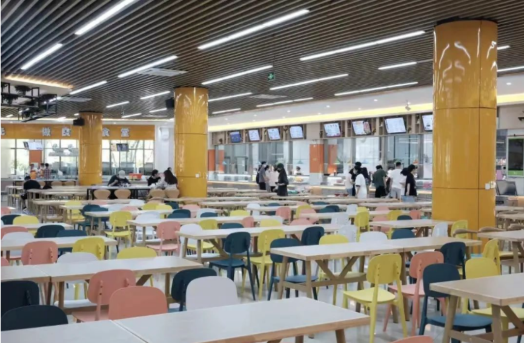 食堂内换上了崭新的木质桌椅